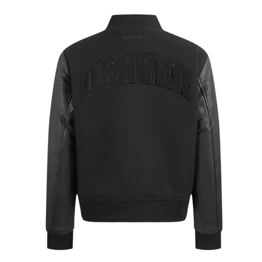 Men's Denver Nuggets Triple Black Varsity Wool/Leather Jacket