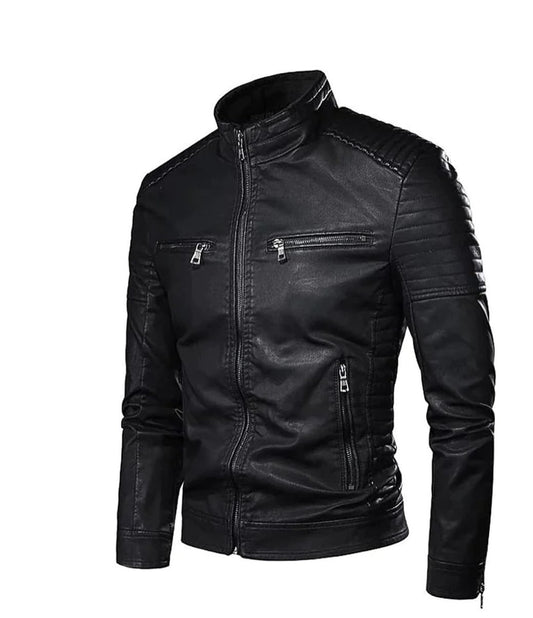 Motorcycle Black Leather Jacket Men - Vintage Biker Jacket