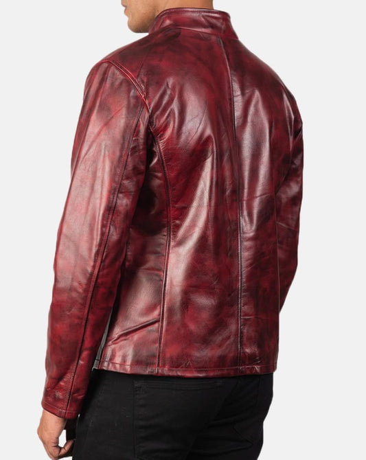 Mens Distressed Red Maroon Leather Jacket