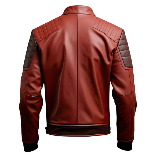 Men's Genuine Sheepskin Quilted Winter Leather Jacket, maroon brown jacket, Lightweight, Soft, Rider Style