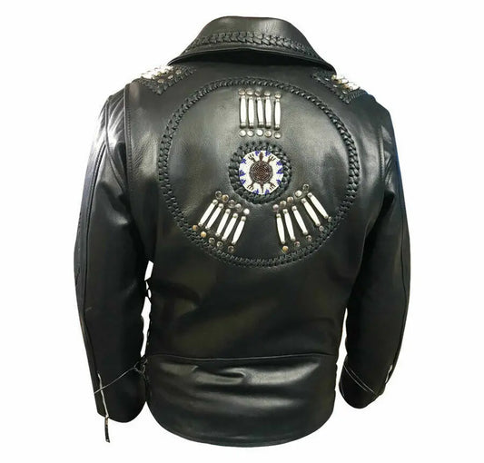 Men's leather jacket Western Genuine Cowhide Leather Jacket Bone & Beads Native American