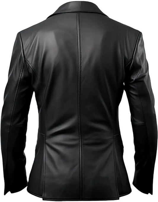 Men's Black Leather Blazer with Notch Lapel Collar