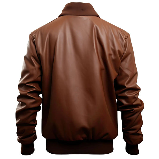 men's leather jacket Dark Brown White Sheepskin Leather Jacket with Baseball Collar, Casual Sportswear Lightweight