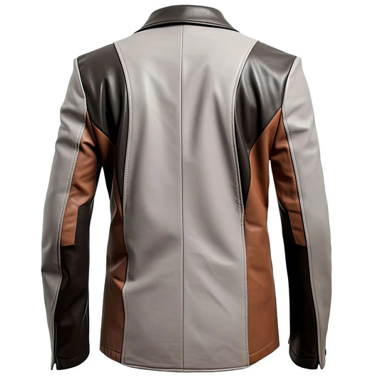 Men's Grey and Brown Sheepskin Men's leather jacket Lightweight Blazer Button Up with Notched Lapel Collar