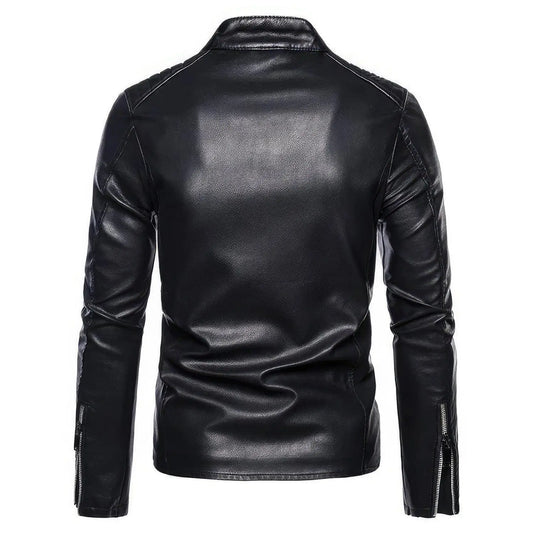 Men's Motorcycle Jacket Classic, Brown, Stand Collar, Front Zip Pockets