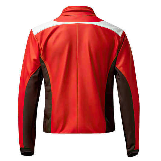 Red Black Genuine Sheepskin Men's Leather Jacket, Lightweight, Casual Slim-fit, Biker Racer Style