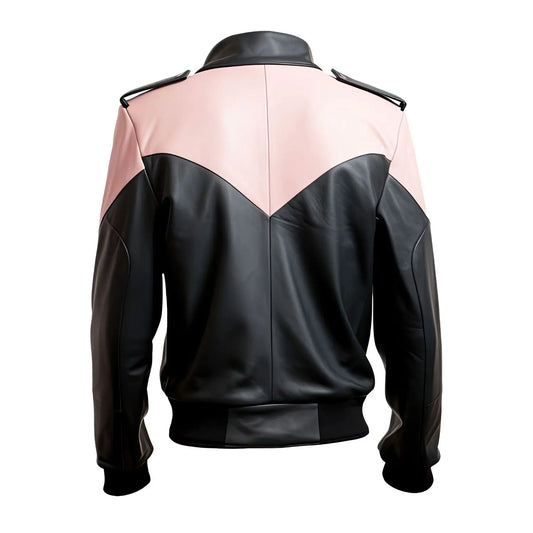 Mens black pink leather jacket Genuine Sheepskin Aviator Jacket