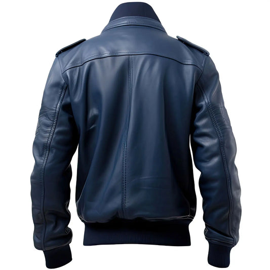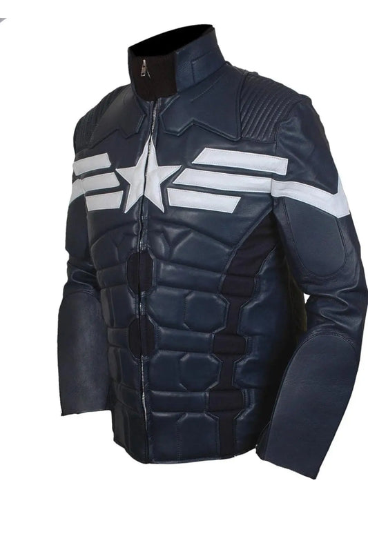 Men's Navy Blue Captain Star Shield style Genuine Leather Jacket