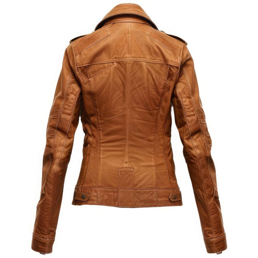 women's leather moto jacket Chocolate Brown Genuine Sheepskin Soft with Shirt Collar, Casual Stylish