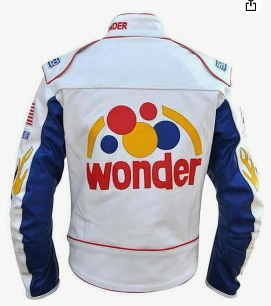 Ricky Bobby Wonder Jacket Racing White Faux Leather Jacket