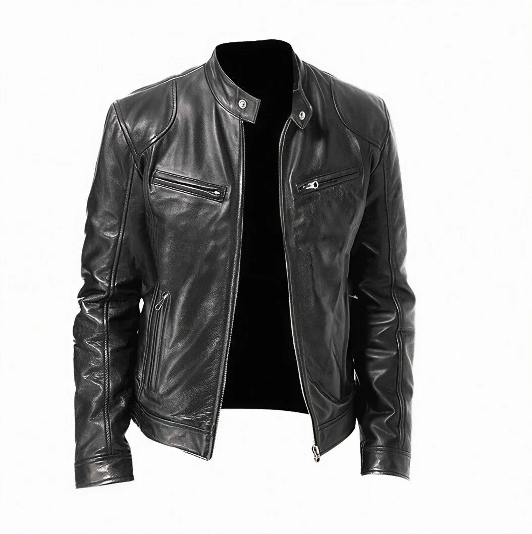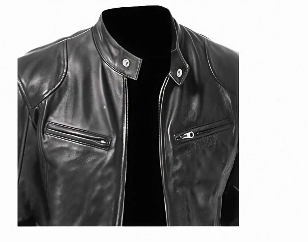 Cafe Racer Men's Leather Jacket Genuine Sheep Skin Motorcycle Biker Black Jacket