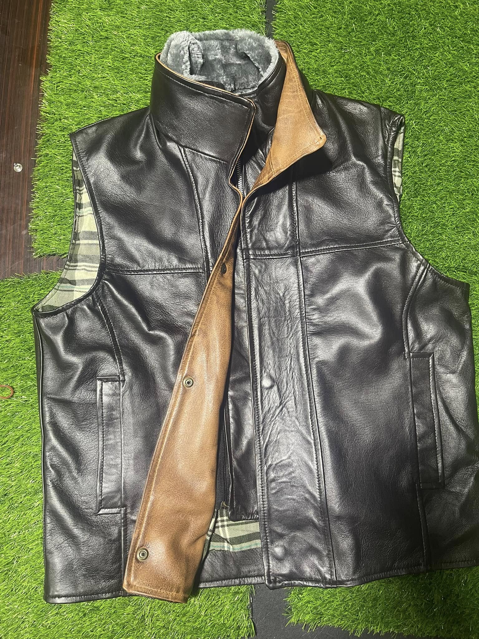 Men’s Black Vest With Brown Shearling Lining – Gilet with Zipper Pockets