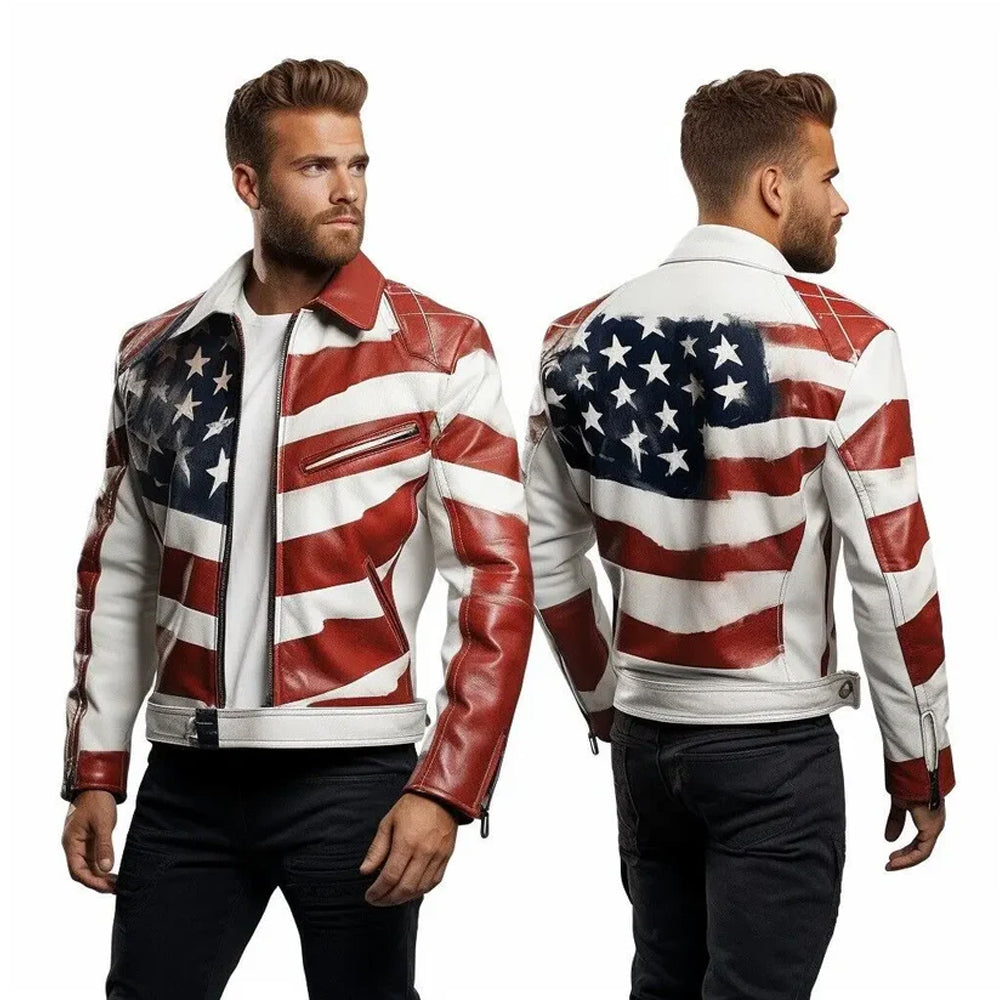 Men's leather jackets inspired by the USA flag are not only stylish but also make a bold statement. These jackets feature eye-catching colors like red, white, and blue, embodying patriotism while maintaining a sleek look. Whether you wear it casually or for a night out, this jacket is designed to turn heads and showcase your unique sense of style. You can pair it with jeans or chinos for a complete look.